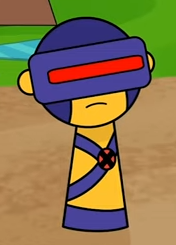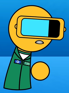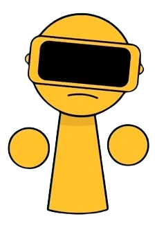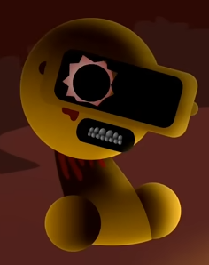 Garnold is a yellow Sprunki with a black and yellow visor covering his eyes and no eyebrows.