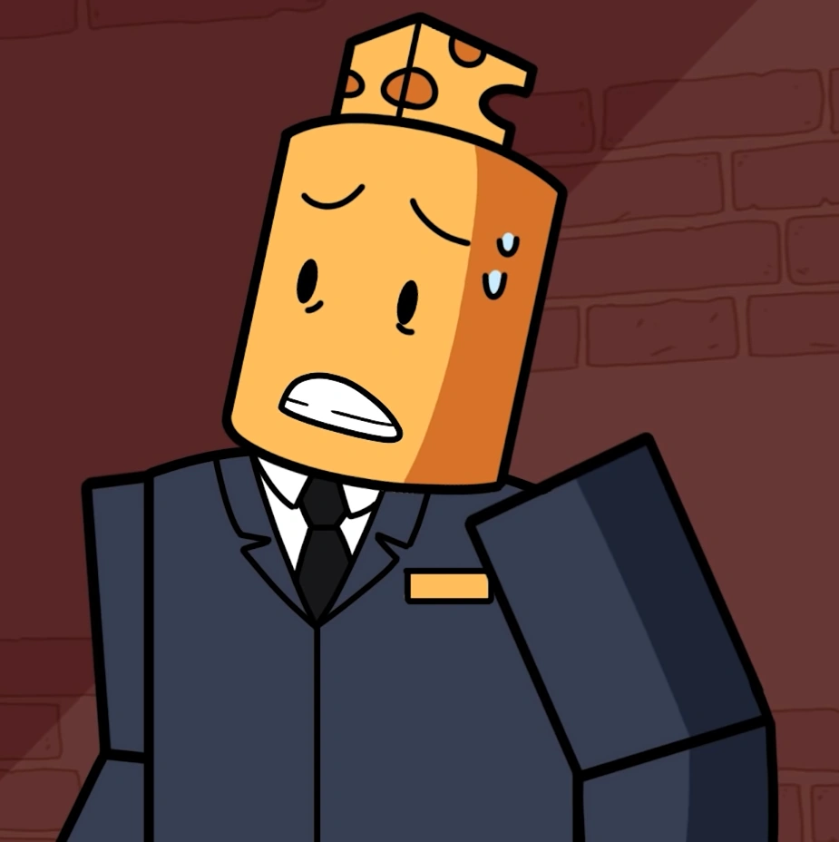 Charlie Cheesman, better known by his gamertag Mr. Cheese, is a GameToons mascot and prominent Among Us Logic character. Prior to episode 5, Mr. Cheese was more seen as a minor character due to not saying much other then his old catchphrase, "Hello. My name's Mr. Cheese!". He is comedic and hyper intelligent, although he often acts what would be considered idiotic. He is also an entrepreneur and is very keen on promoting and selling his ideas. His romantic interest is TheGentleman and he has an intense rivalry with Player and Mr. Egg. He takes care of his two dogs alongside TheGentleman called Cheddar and Toto.