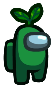 Stoner is a green Among Us crewmate with a sapling sprouting from his head